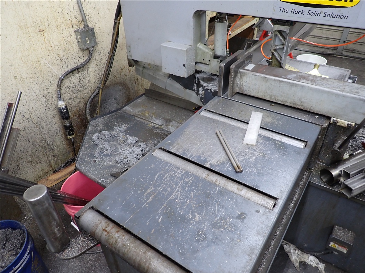 HORIZONTAL MITERING BANDSAW, COOLANT SYSTEM, CLAMP FEED ROLLS, CONTROLS, S/N: 6A0706163