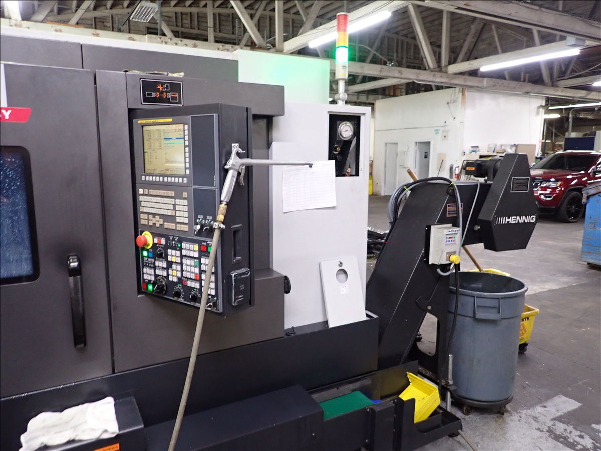 CNC TURNING CENTER, 24-STATION TURRET, LIVE TOOLING, HIGH PRESSURE COOLENT, HENNIG CHIP CONVEYOR, FANUC SERIES 31I-MODEL B CONTROLS, W/2015 LNS QUICKLOAD SERVO 82 S2 BAR FEEDER