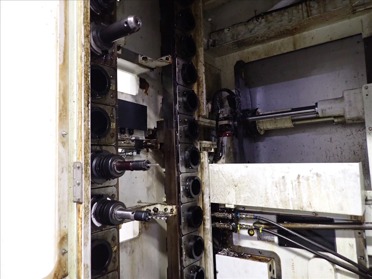 CNC HORIZONTAL MACHINING CENTER, 60-STATION TOOL CAROUSEL, C50, 12,000 RPM, 2-PALLET SHUTTLE, HAKUSAN CHIP CONVEYOR, FANUC SERIES 16I-MB CONTROLS
