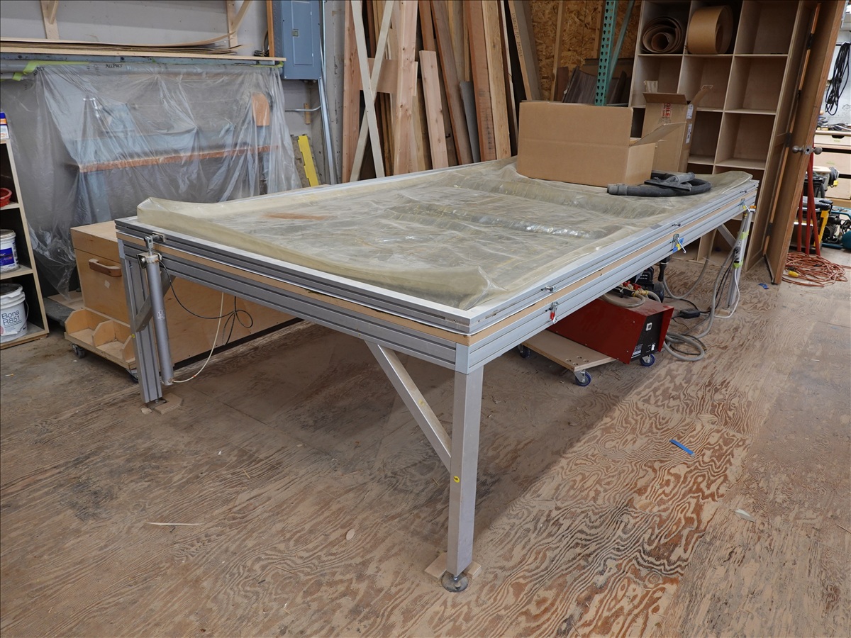 67"X127" VACUUM TABLE W/HUSKY 2-GAL AIR COMPRESSOR & HI-FLO INDUSTRIAL VACUPRESS PUMP