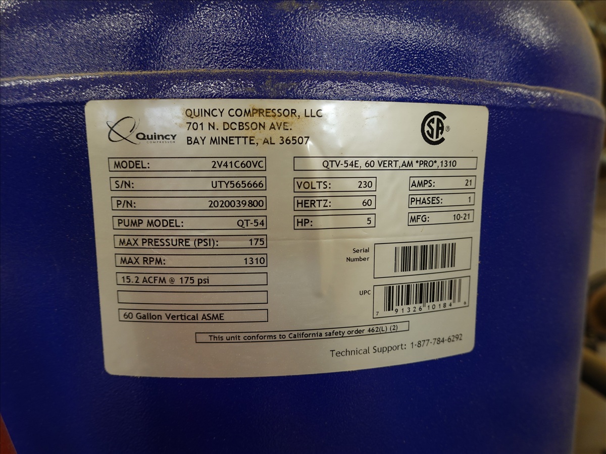 60-GAL VERTICAL AIR COMPRESSOR, 175 PSI MAX, 5 HP, 6HZ, SINGLE PHASE