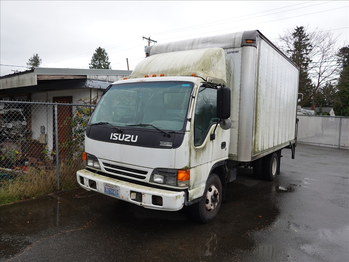 12' DUALLY CAB OVER BOX TRUCK, MAXON LIFT GATE, DIESEL ENGINE, AUTO, A/C