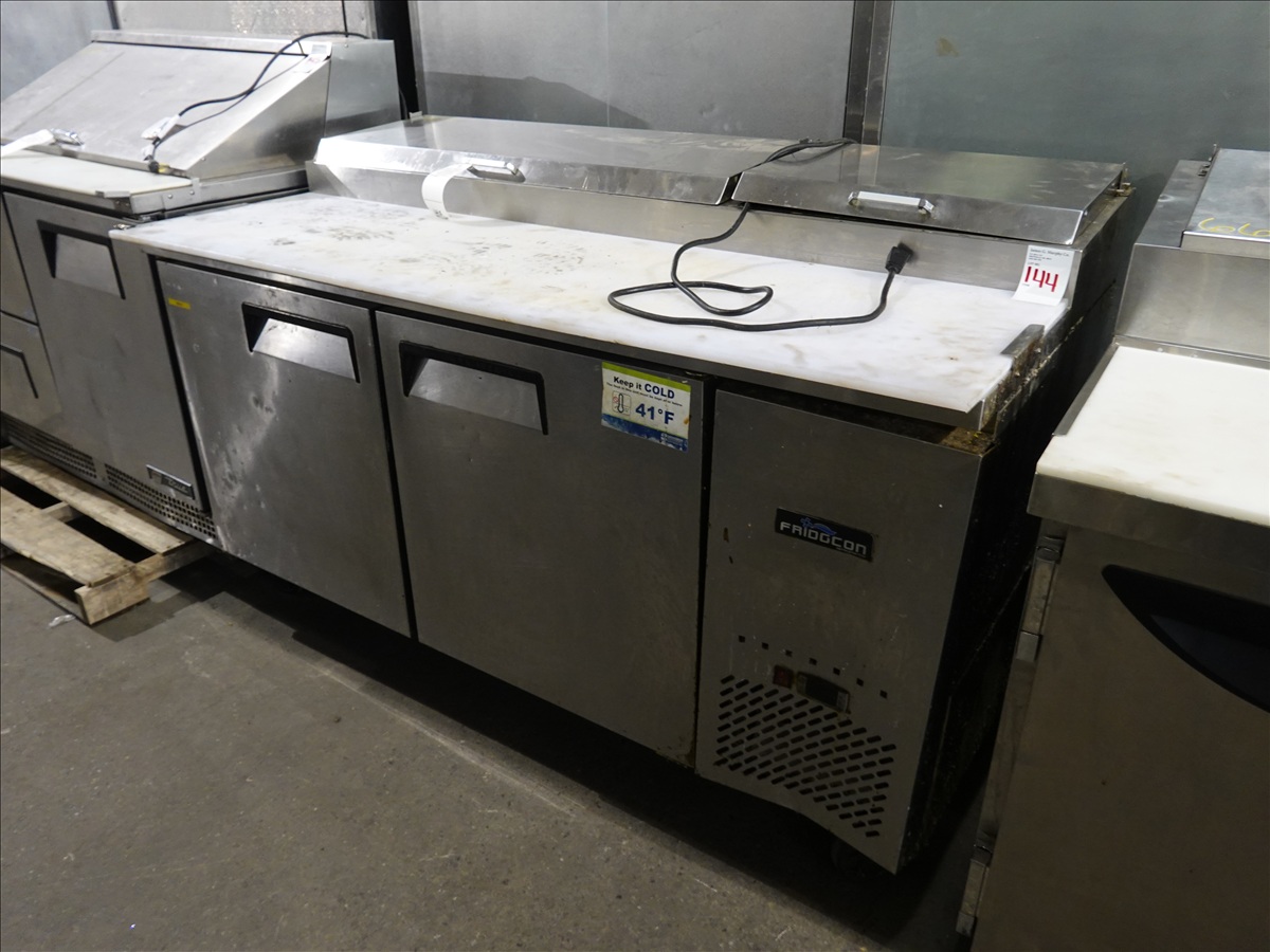 67" SS REFER PIZZA PREP TABLE ON CASTERS, 115V (COOLS TO 34 DEGREES F)
