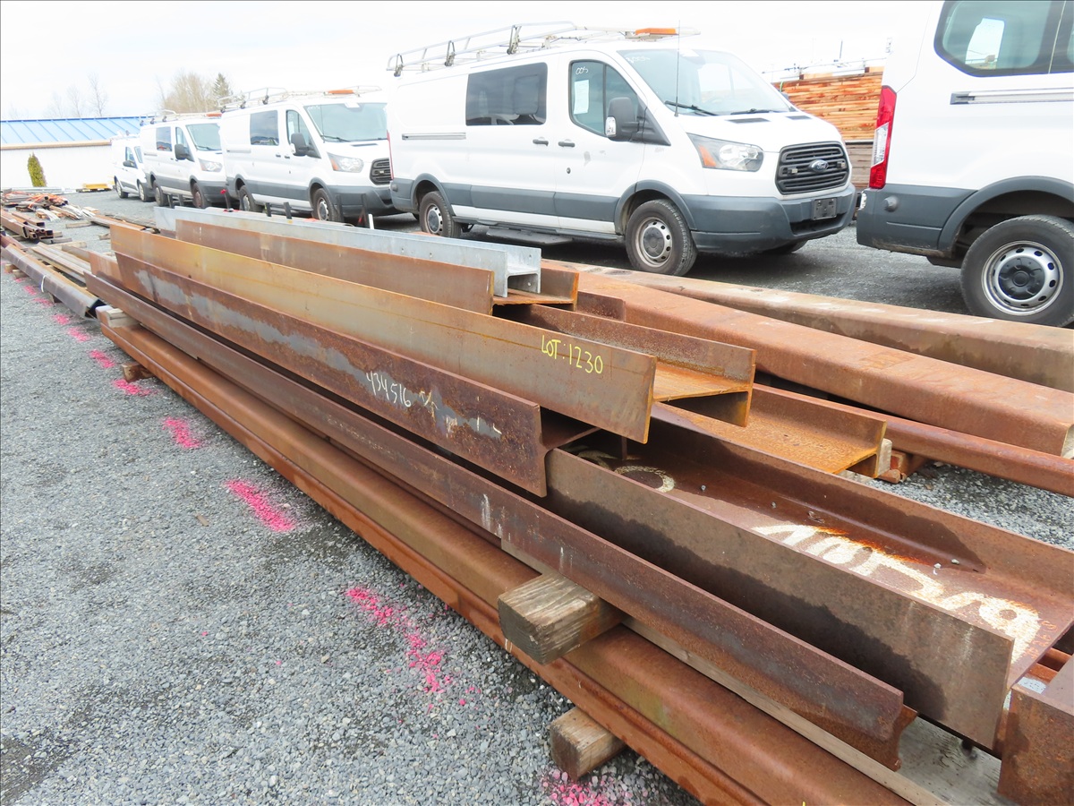 LOT, ASSORTED STEEL I-BEAMS IN THIS BIN