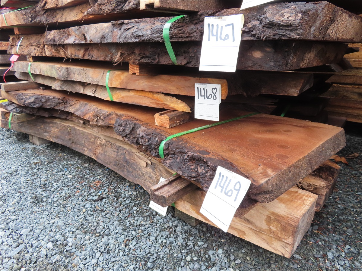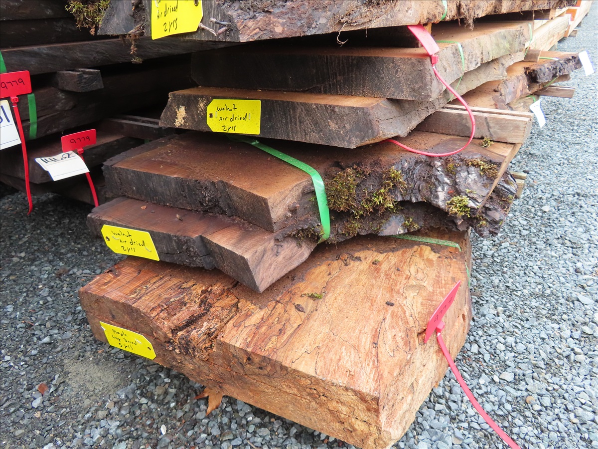 LOT, (2) APPROX 82"L X 15"W X 2"H 2-YEAR AIR DRY WALNUT LIVE EDGE SLAB (NO REMOVAL BEFORE WEDNESDAY, FEBRUARY 18TH)