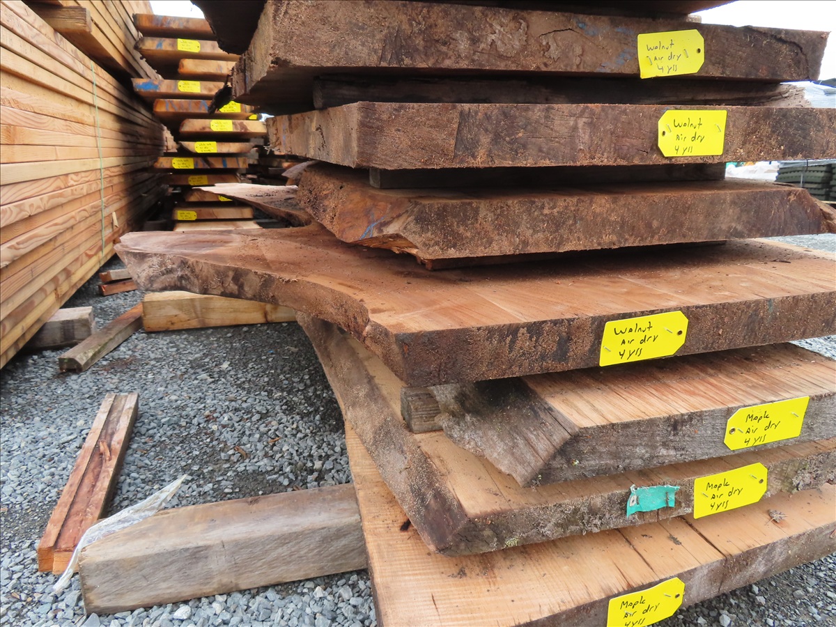 APPROX 73"L X 39"W X 2"H 4-YEAR AIR DRY WALNUT LIVE EDGE SLAB