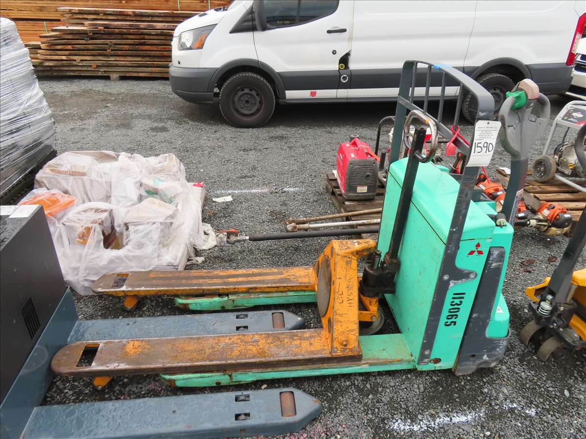 LOT, (1) MITSUBISHI PW23 ELECTRIC PALLET JACK, 24V & (1) LIFT RITE PALLET JACK (NEEDS REPAIR)