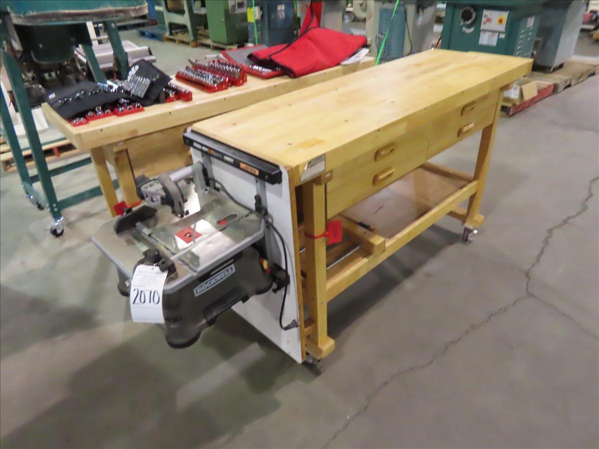 TABLE SAW W/WALL-MOUNT, 115V W/US GENERAL 60" X 20" 4-DRAWER WORKBENCH ON CASTERS