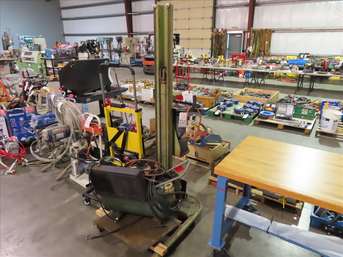 LOT, (1) VALLEY CRAFT PRODUCTS 6020 ELECTRIC/HYDRAULIC MATERIAL LIFT & (1) SPEEDAIR 32408 & 8-GAL HORIZONTAL AIR COMPRESSOR, 120V
