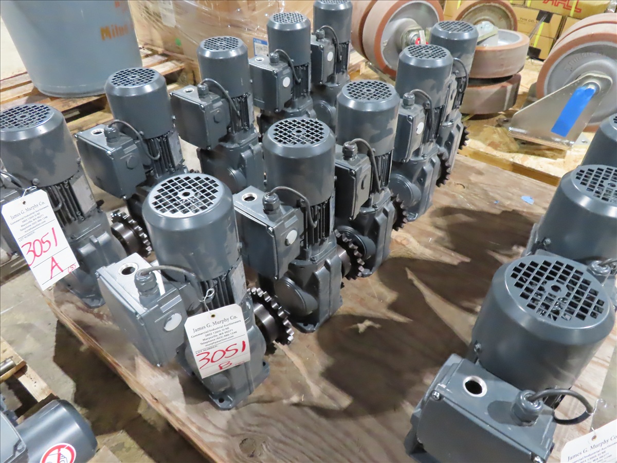 LOT, (5) SIEMENS .18KW MOTOR W/REDUCER & SPROCKET, 230/460V, 3 PHASE (UNUSED)