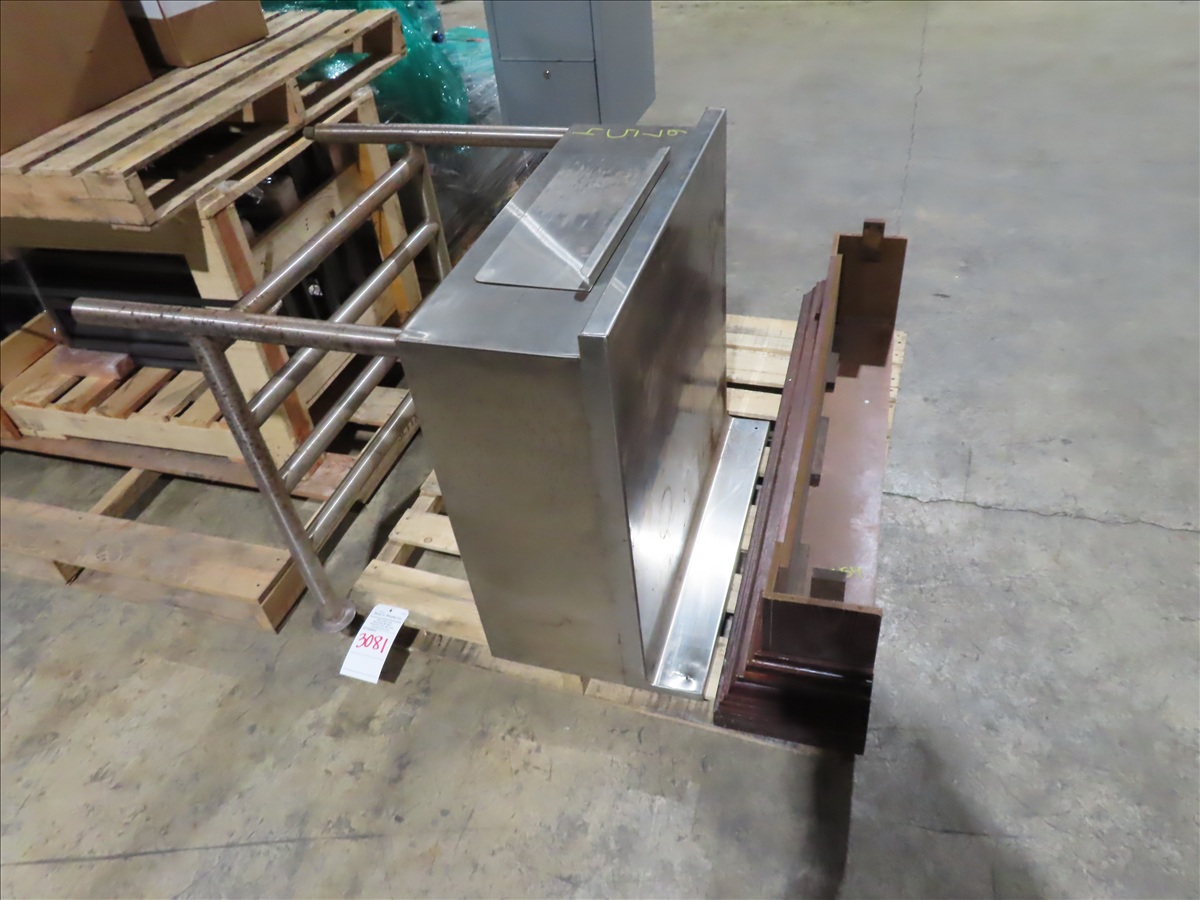 LOT, (1) 30" X 29" SS TABLE W/4" BACKSPLASH & (1) 53" WOOD MANTLE