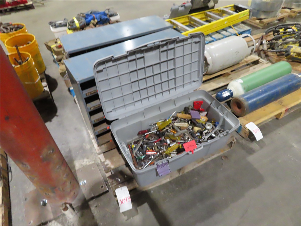 LOT, (2) 35"L X 12"W X 24"H HARDWARE CABINETS & MISC TOOLS ON THIS PALLET