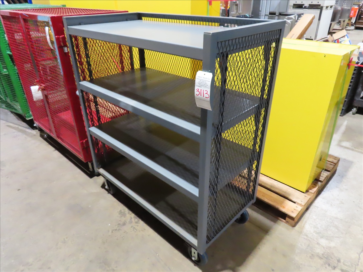 3-SIDED SHELF TRUCK W/(3) SHELVES ON CASTERS, APPROX 49" X 25" X 58"