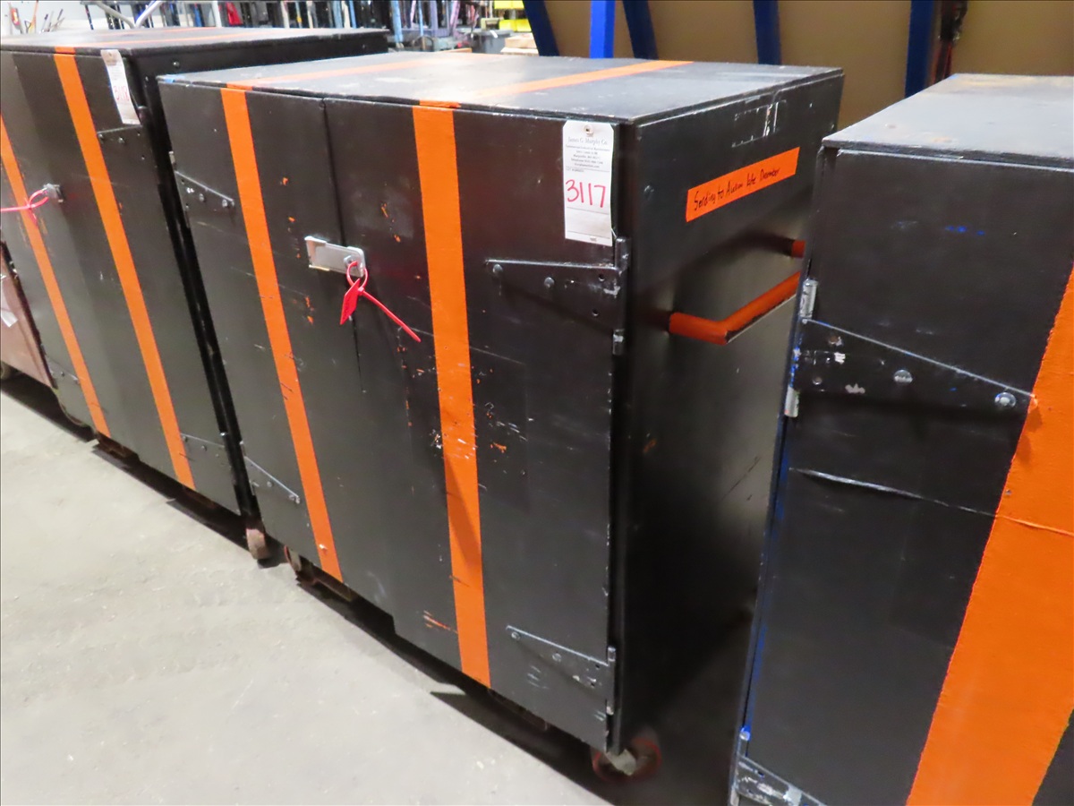 LOCKING WOOD CABINET W/(3) SHELVES, APPROX 49"...