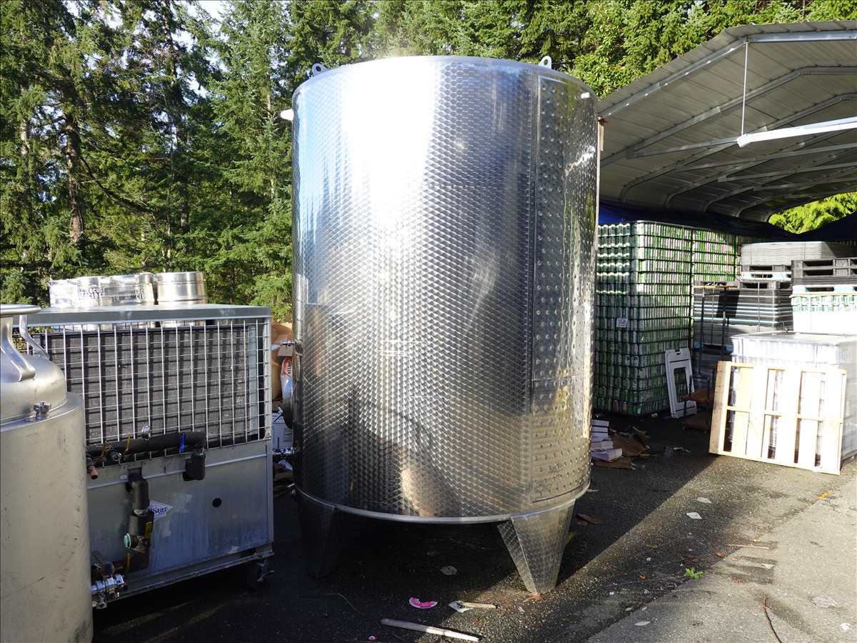 8,750L S/S JACKETED FERMENTATION TANK, VALVES, GUAGE, FRONT GATE