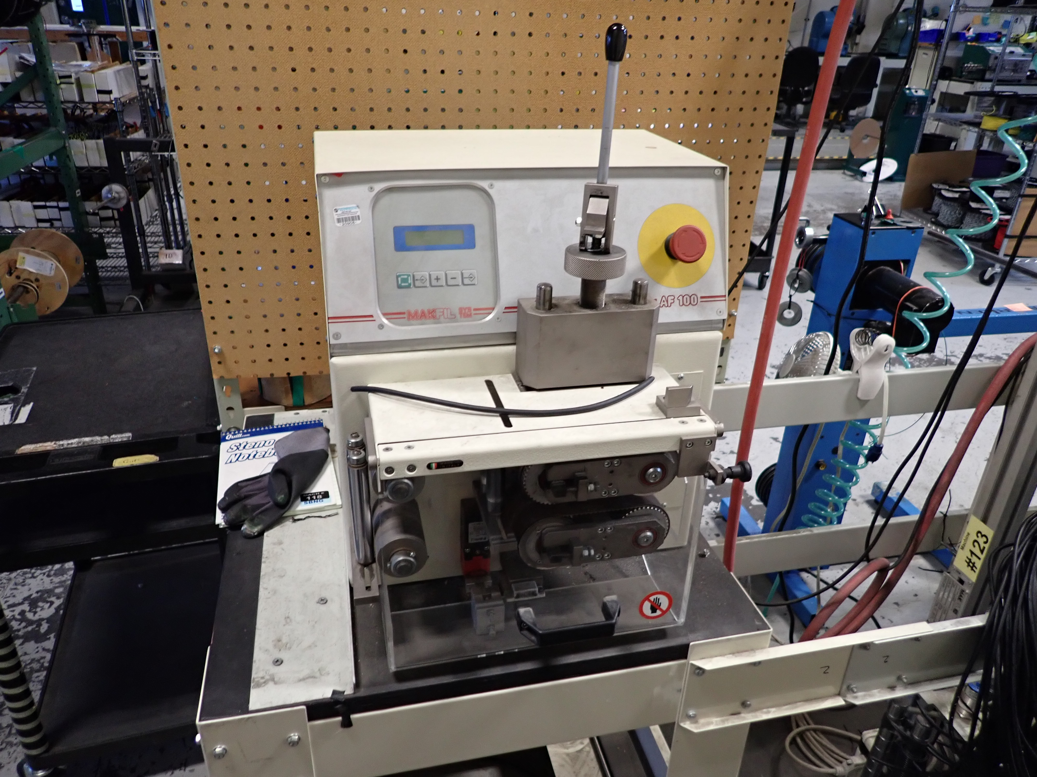 AUTOMATIC CUTTING MACHINE W/2004 MAKFIL SYSTEM AF100-25 PREFEEDER, BENCH & ACCESSORIES, S/N'S:10001841;10001025
