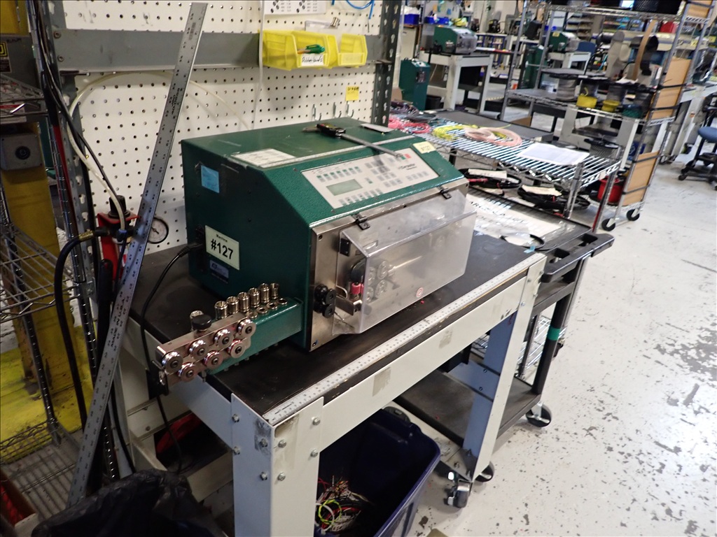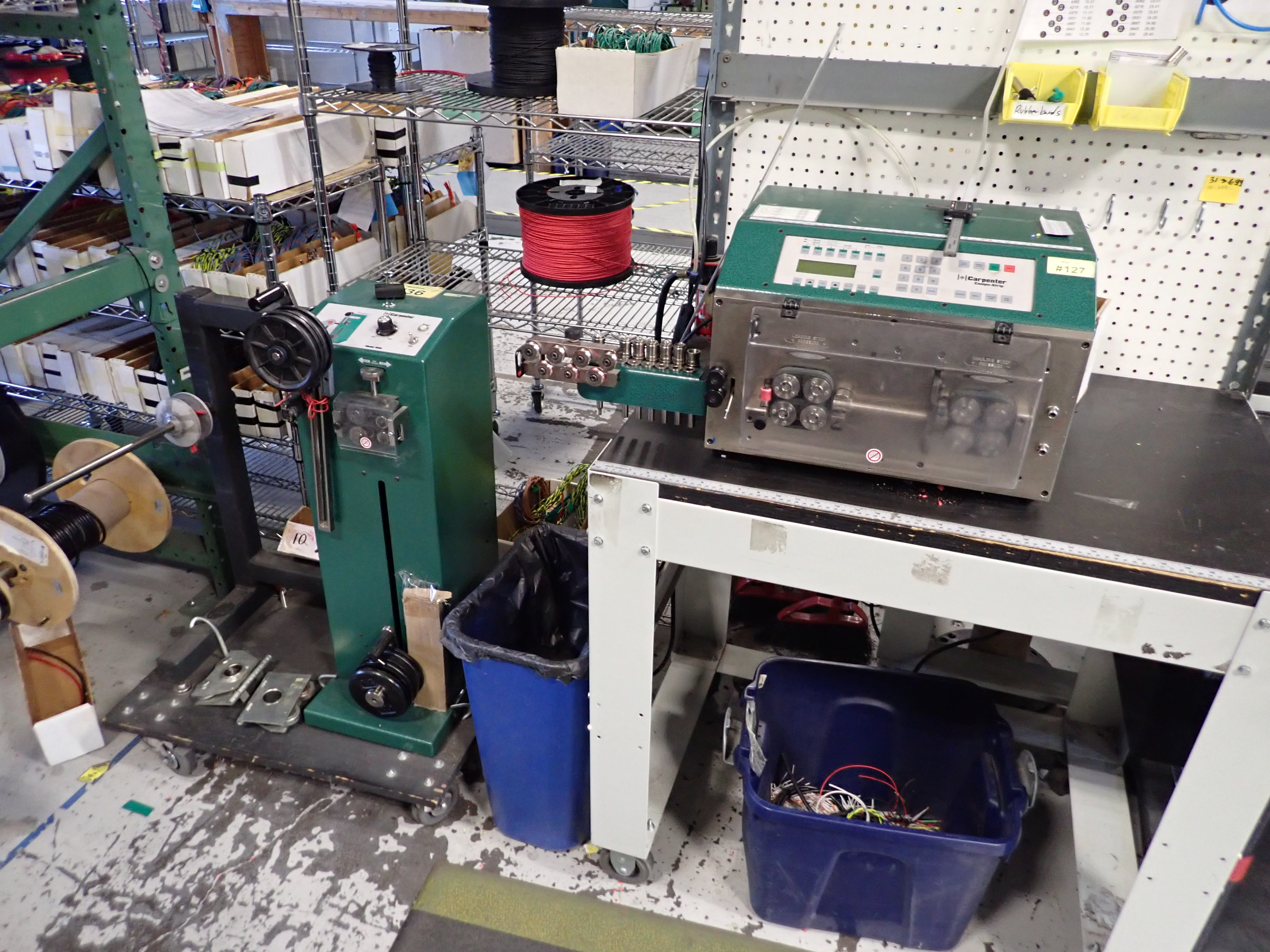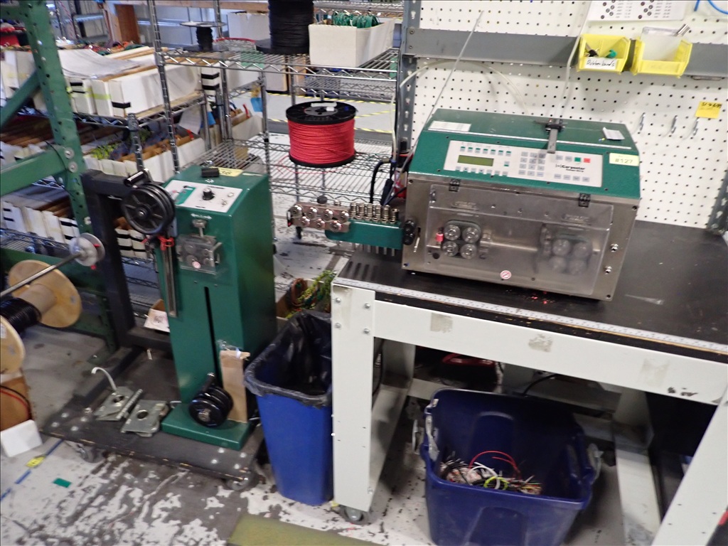 AUTOMATIC WIRE MEASURE, CUT & STRIP MACHINE W/58A PREFEEDER, BENCH & ACCESSORIES