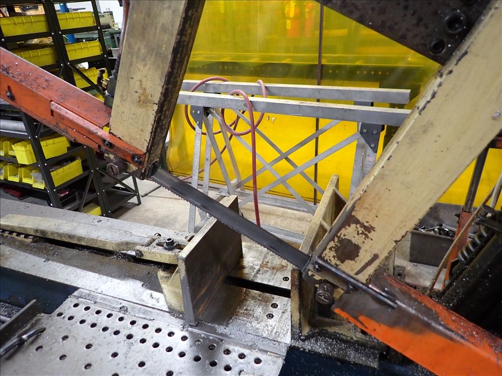 HORIZONTAL METAL CUTTING BANDSAW, COOLANT SYSTEM, FEED, CLAMP, ON CASTERS