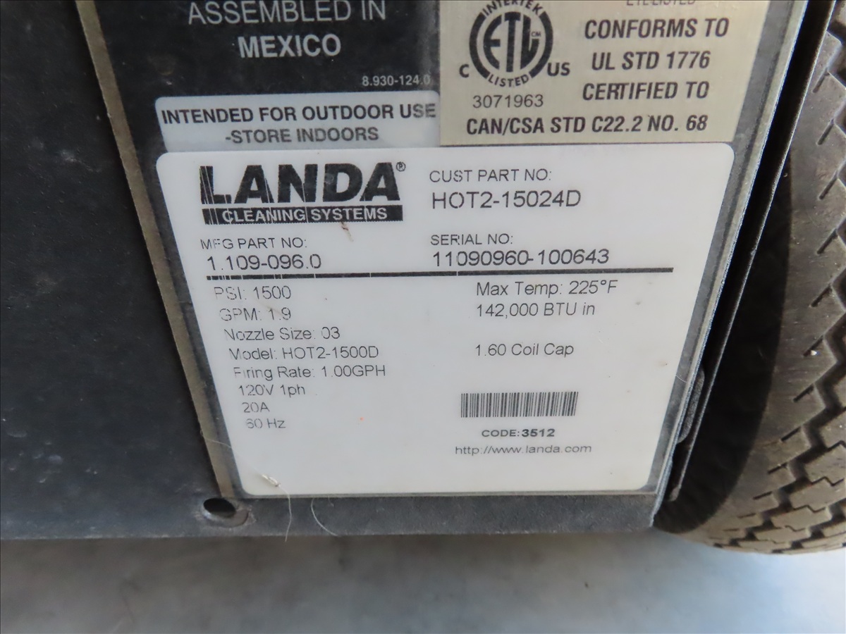 DIESEL FIRED PORTABLE HOT WATER PRESSURE WASHER W/COX REELS 117-3-400 HOSE REEL, HOSE & WAND, 1,500 PSI, 42,000 BTU, SINGLE PHASE, 120V