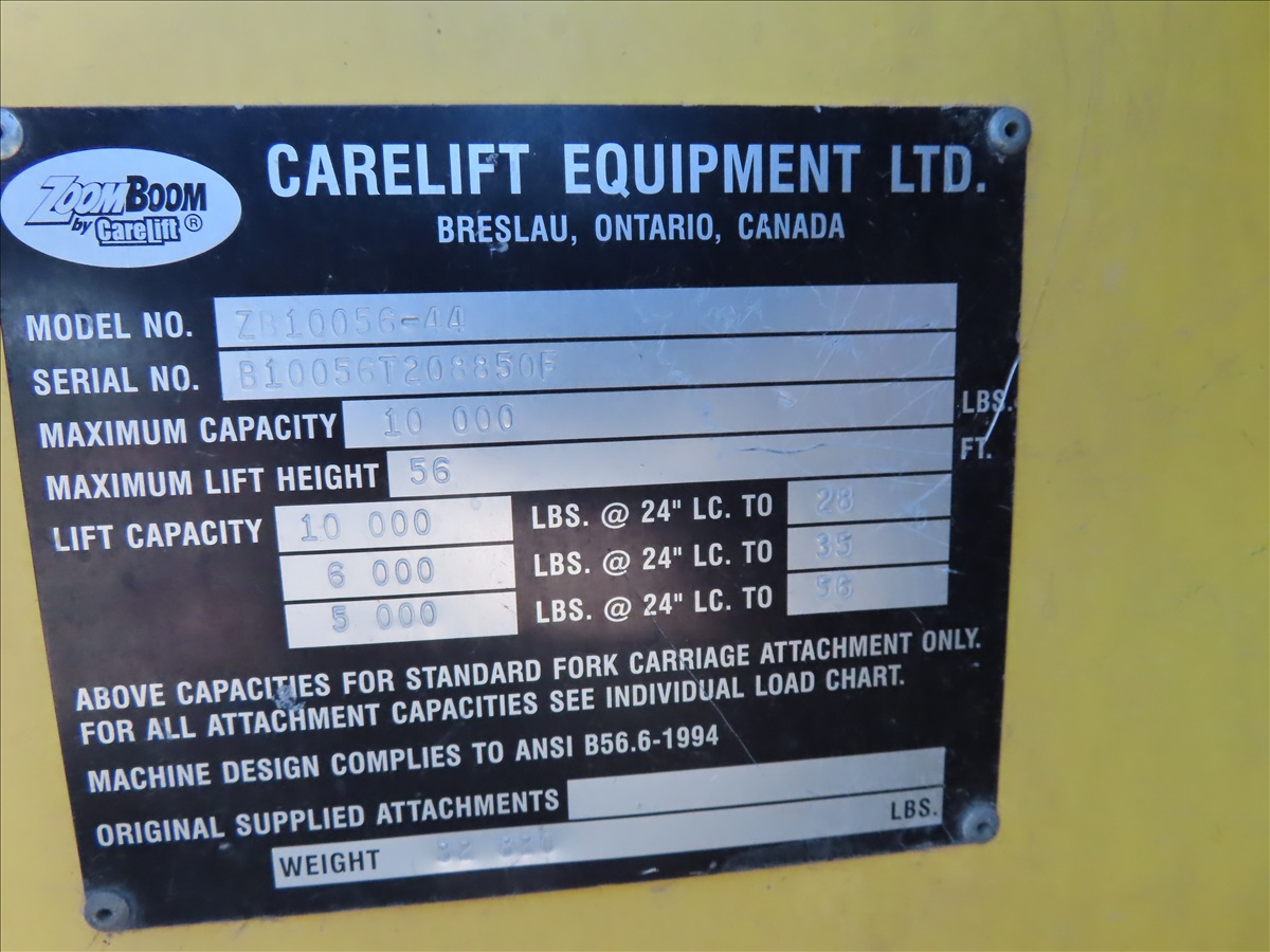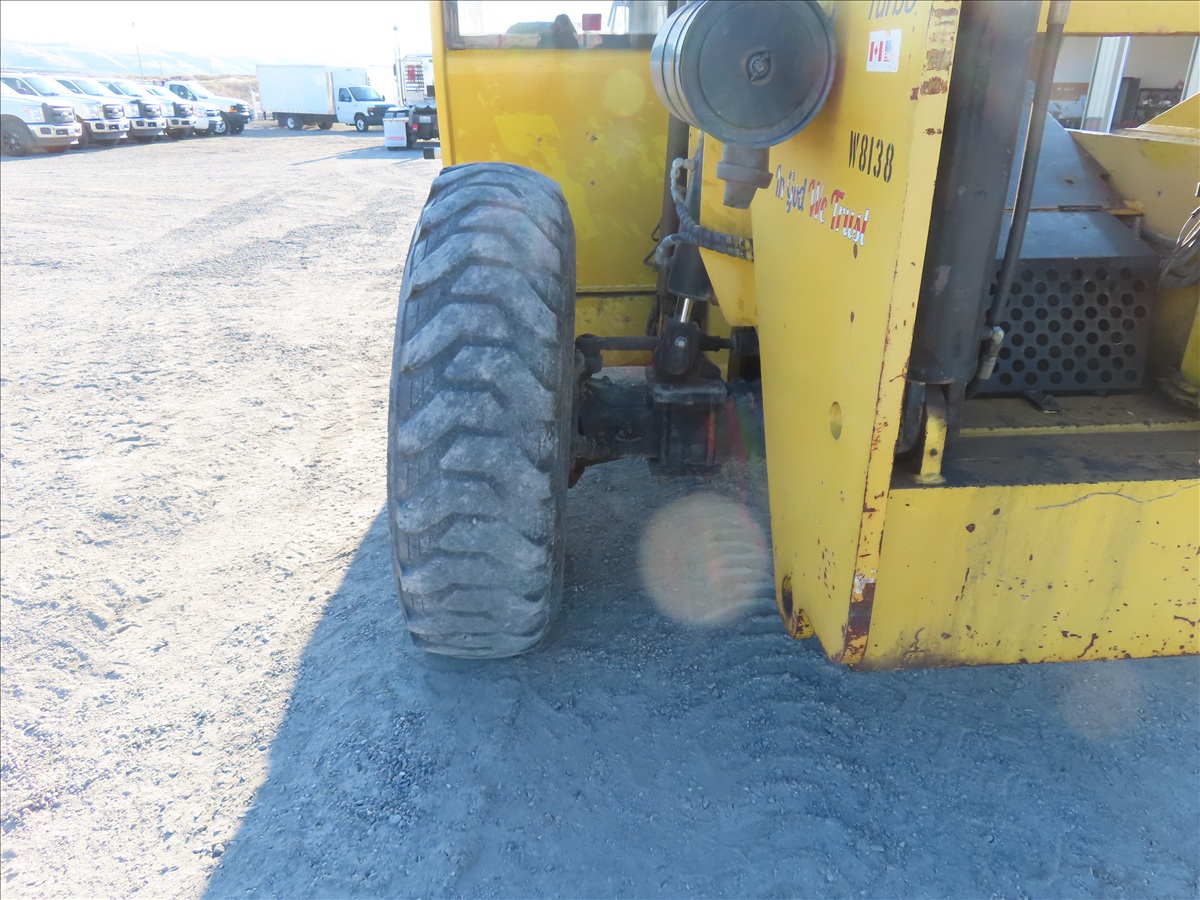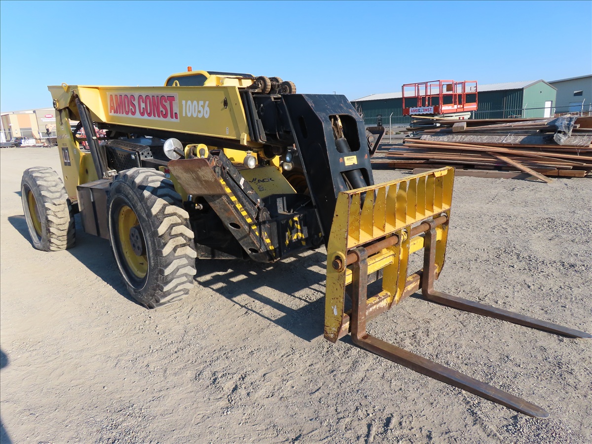 4X4X4 10,000 LB CAP TELESCOPIC FORKLIFT, CAB, 56' LIFT HEIGHT, 4-SECTION BOOM, HYDRAULIC STABILIZERS, CUMMINS 4 CYL DIESEL, 14.00-24 (BLOWN REAR HUB, HOUR METER READS: 9,032