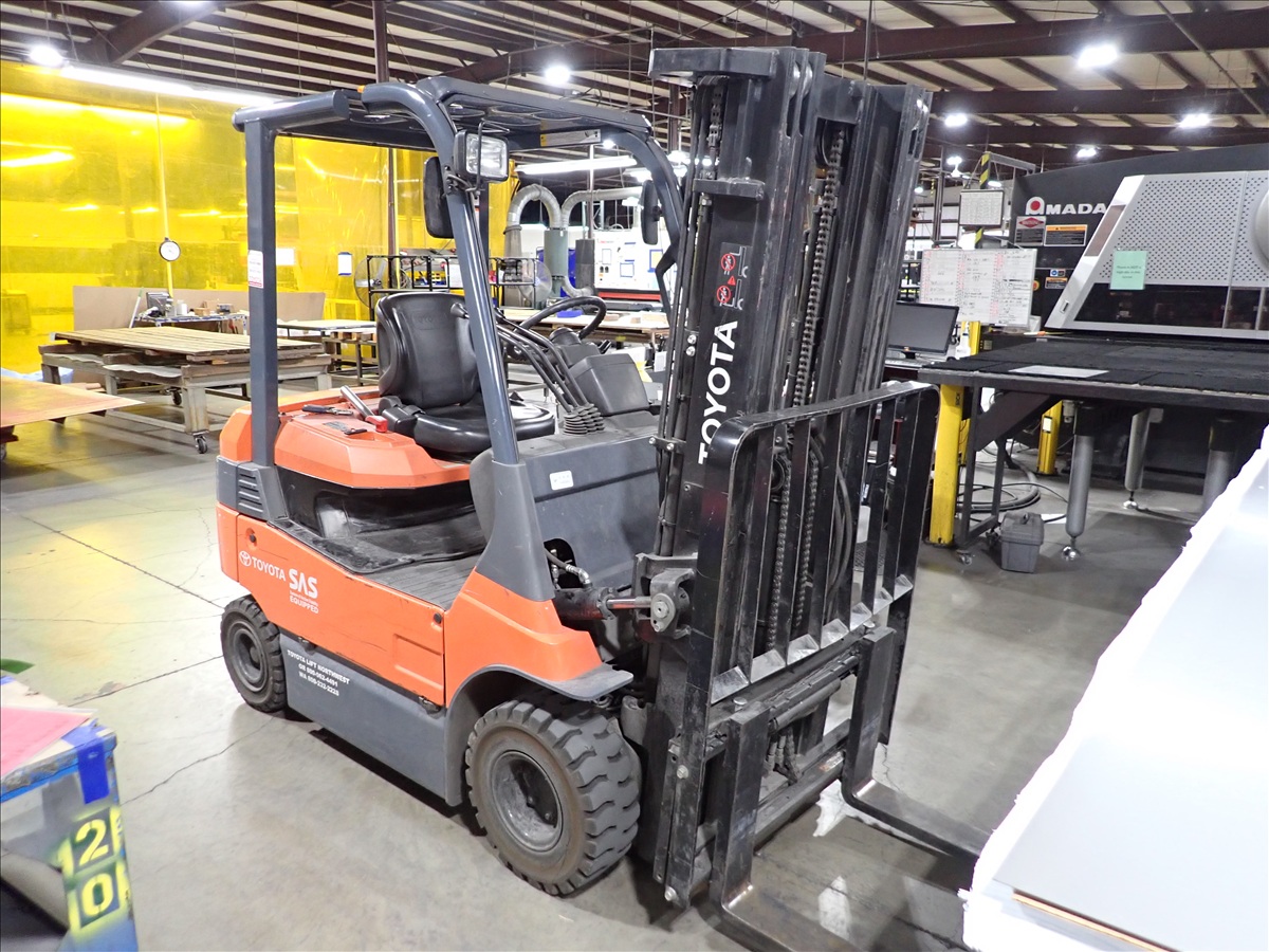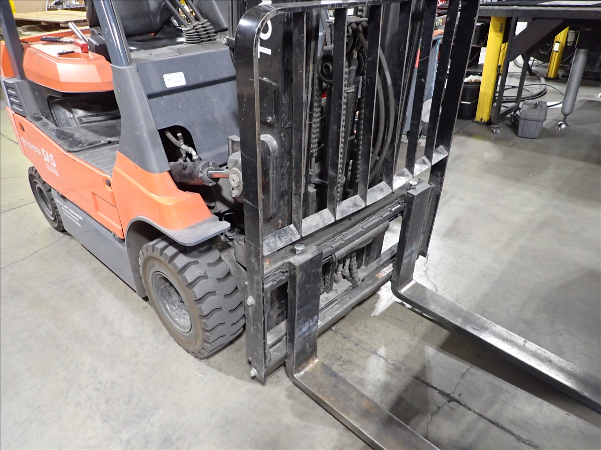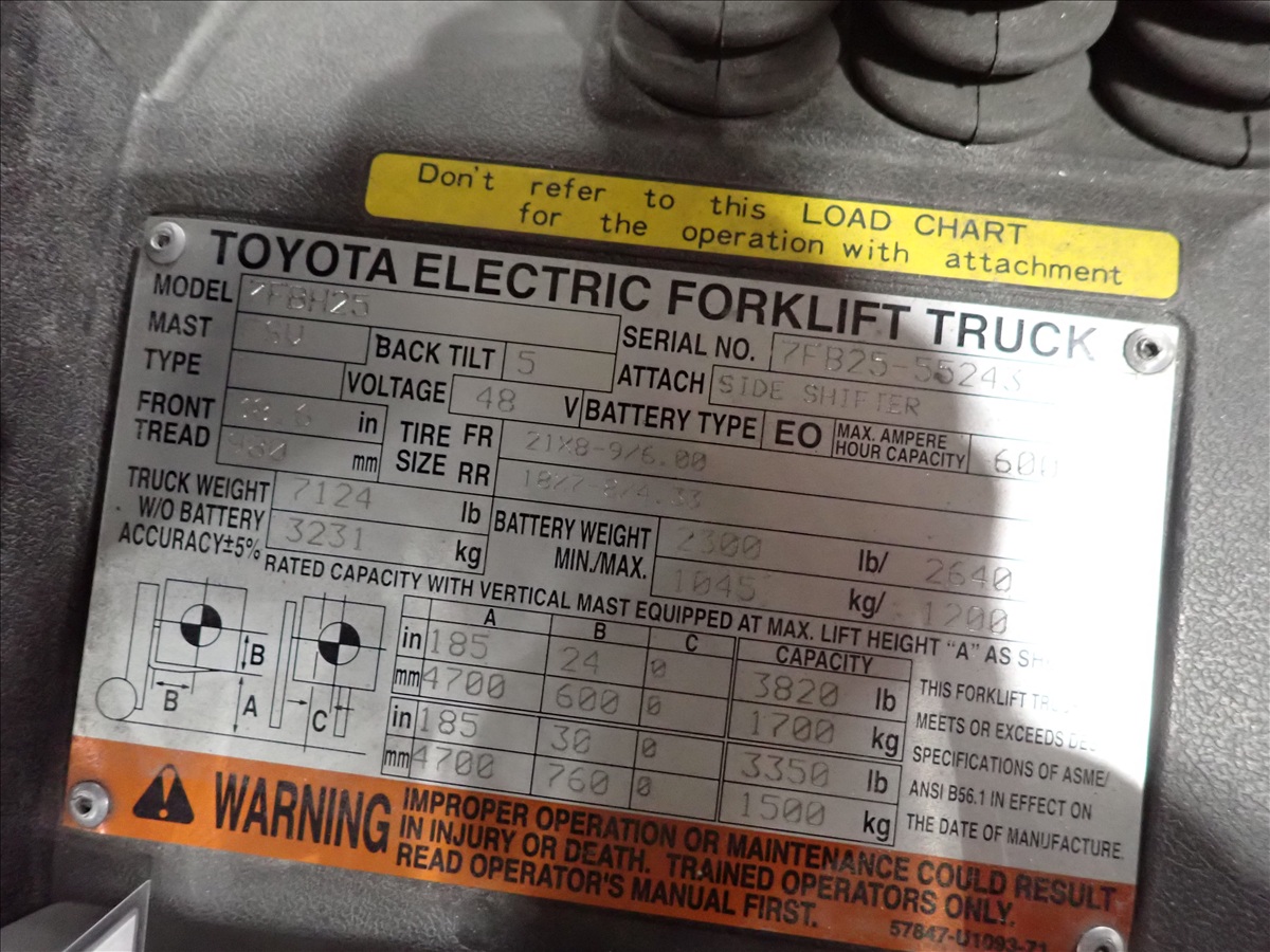 3,820 LB CAP. CUSHION TIRED ELECTRIC FORKLIFT, 185" 3-STAGE MAST, SIDE SHIFT, CHARGER
