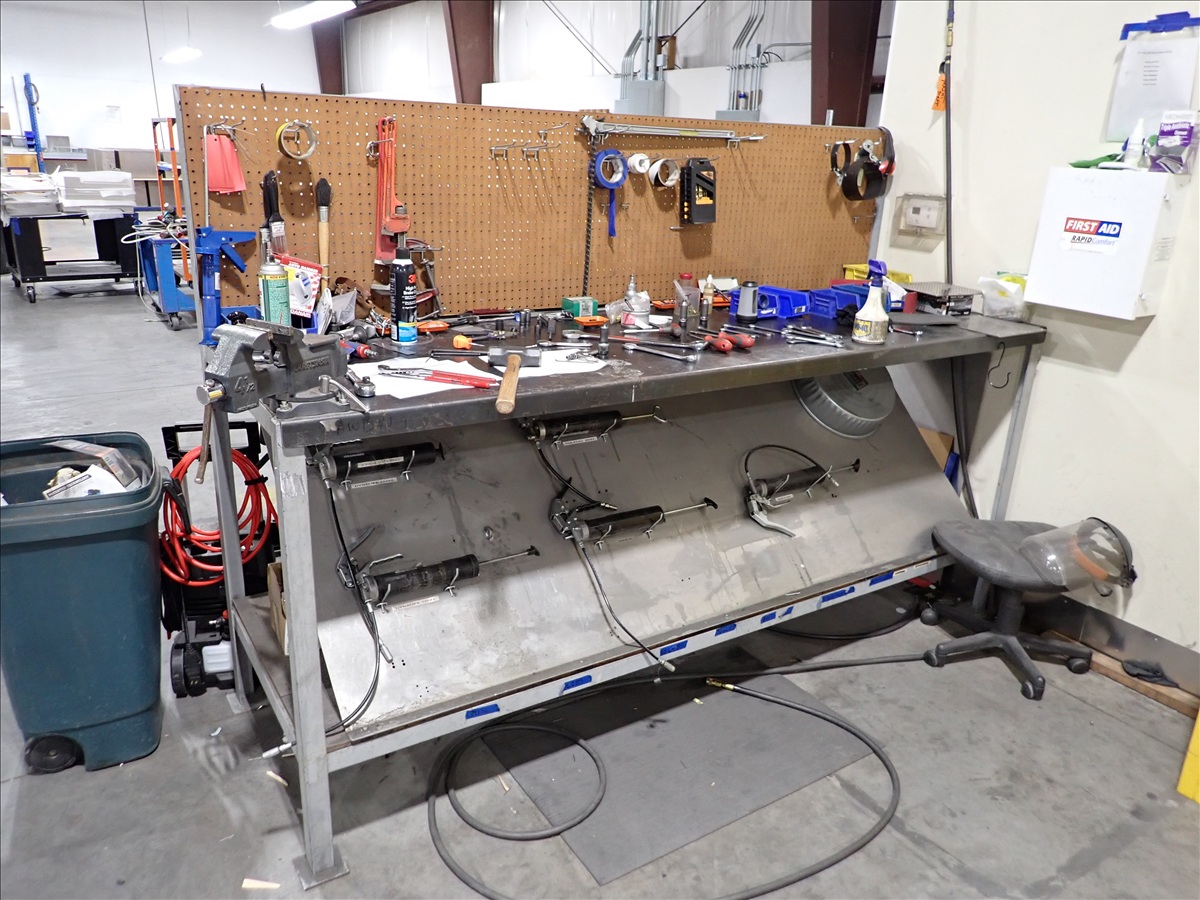 GROUP OF MAINTENANCE BENCH W/HAND TOOLS & FLAM...