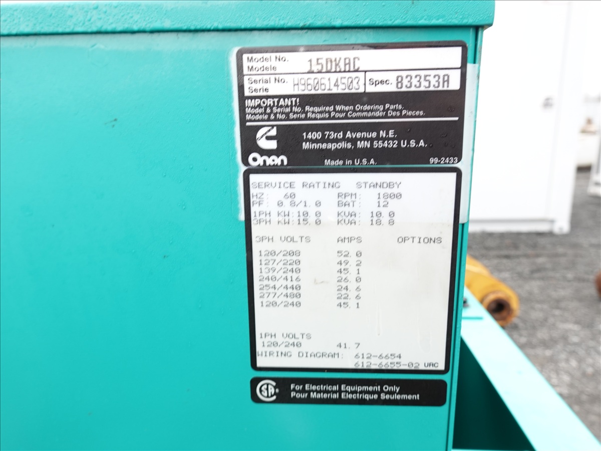 ONAN 15DKAC SKID MOUNTED GENERATOR