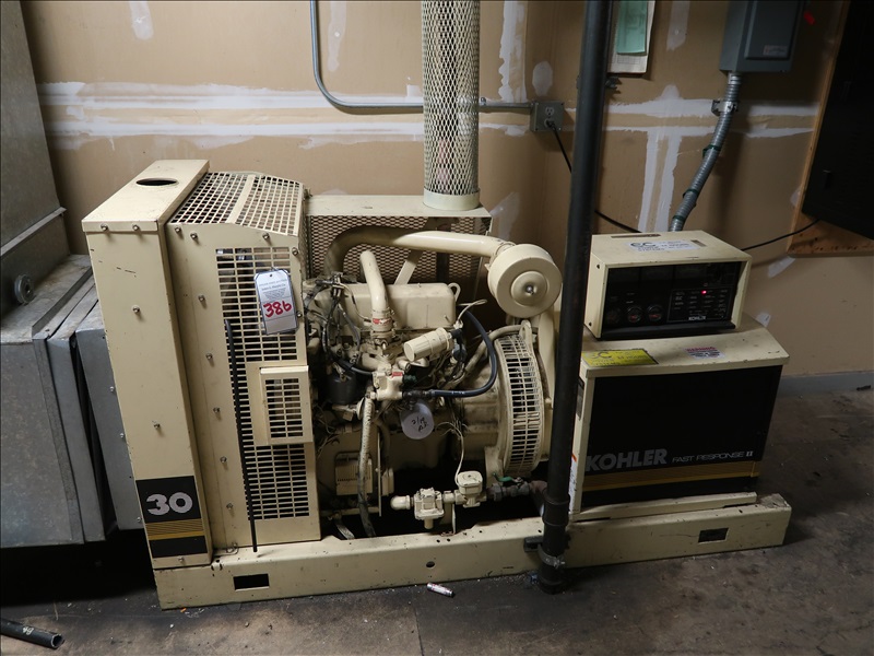 30 KW/30 KVA SKID MOUNTED BACK UP GENERATOR, NATURAL GAS, FORD 4 CYL TRANSFER SWITCH, HOUR METER READS: 911