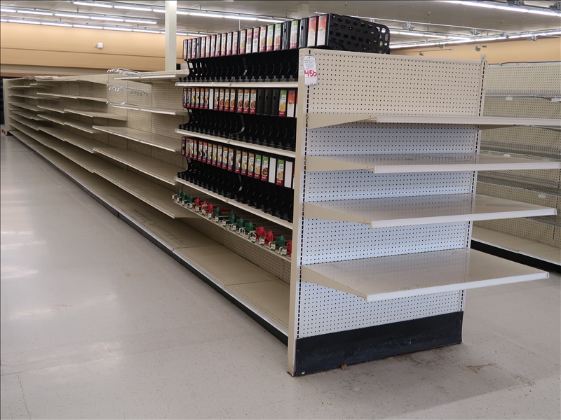 66 LINEAL FEET OF LOZIER DOUBLE SIDED GONDOLA SHELVING