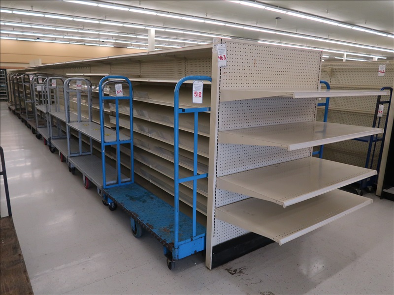 62 LINEAL FEET OF LOZIER DOUBLE SIDED GONDOLA SHELVING