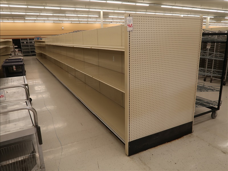 58 LINEAL FEET OF LOZIER DOUBLE SIDED GONDOLA SHELVING