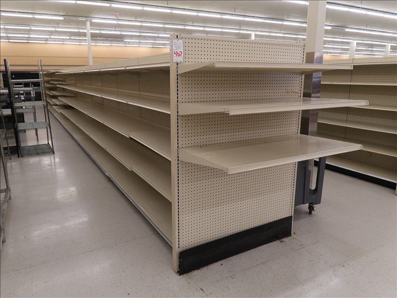 58 LINEAL FEET OF LOZIER DOUBLE SIDED GONDOLA SHELVING