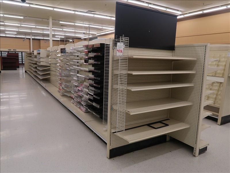 54 LINEAL FEET OF LOZIER DOUBLE SIDED GONDOLA SHELVING & CART RACKS
