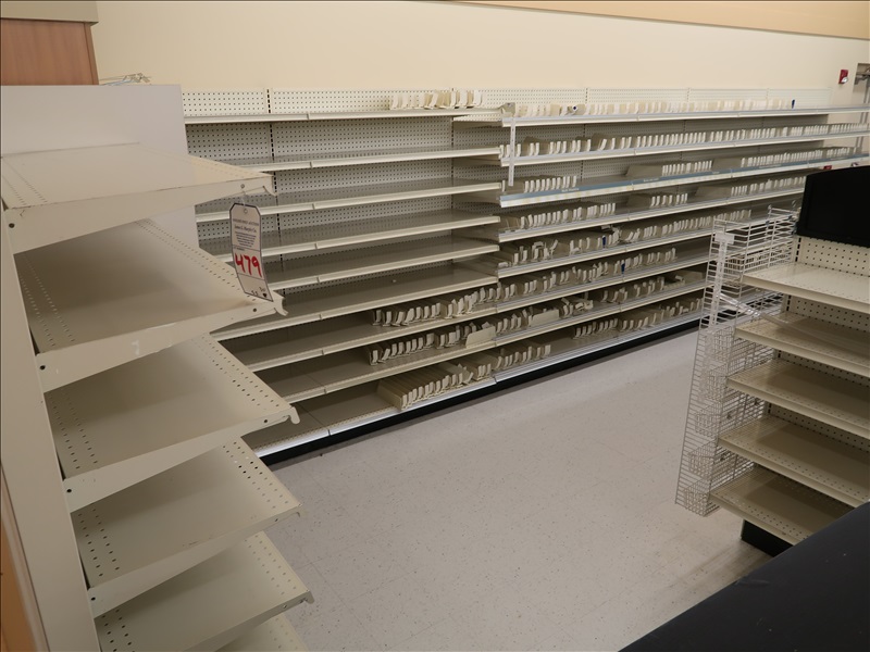 30 LINEAL FEET OF LOZIER SINGLE SIDED GONDOLA SHELVING