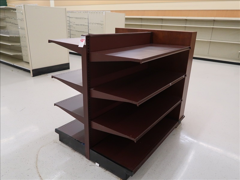 8 LINEAL FEET OF LOZIER DOUBLE SIDED GONDOLA SHELVING