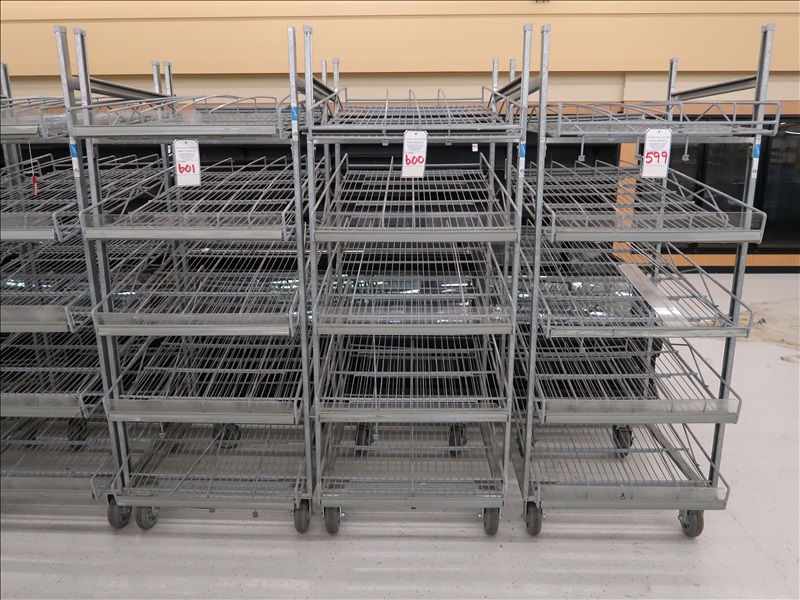 THE MILK MOOVERS GRAVITY FEED SHELVING RACK ON CASTERS