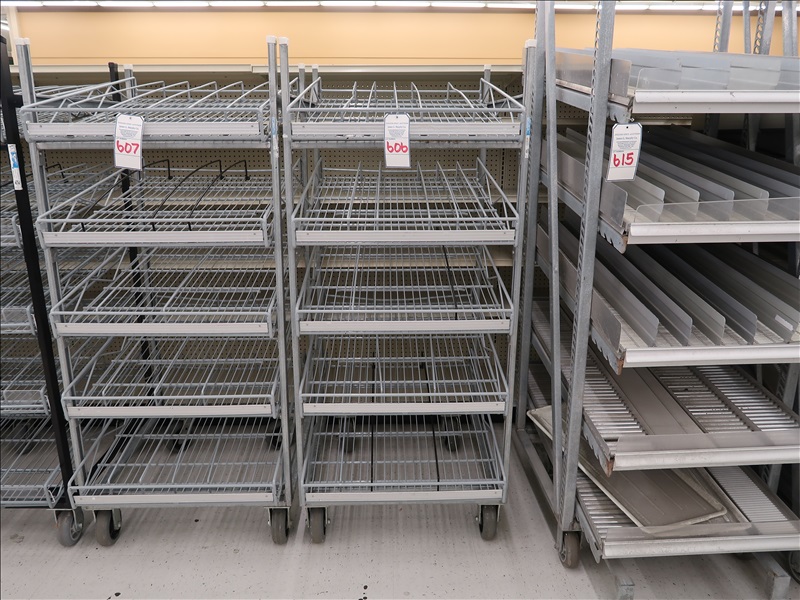 THE MILK MOOVERS GRAVITY FEED SHELVING RACK ON CASTERS