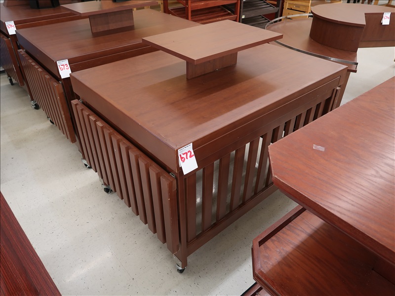 ADJUSTABLE SHELF DISPLAY TABLE ON CASTERS