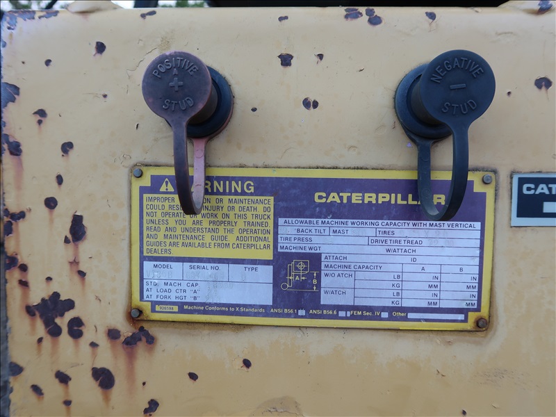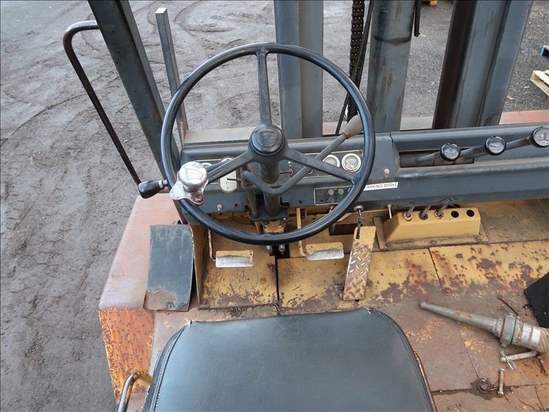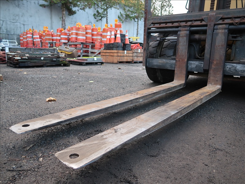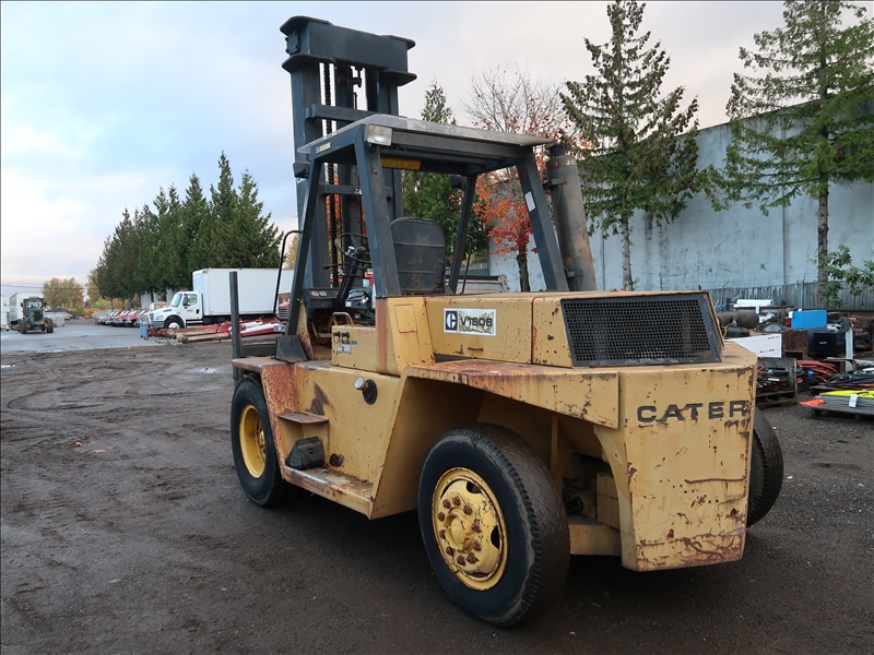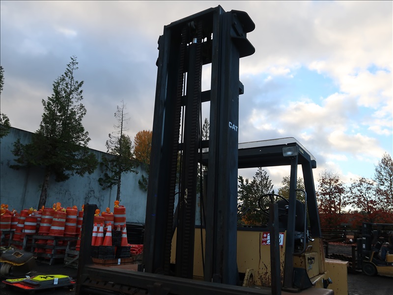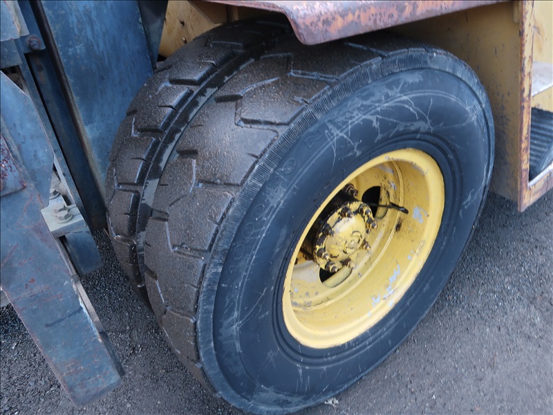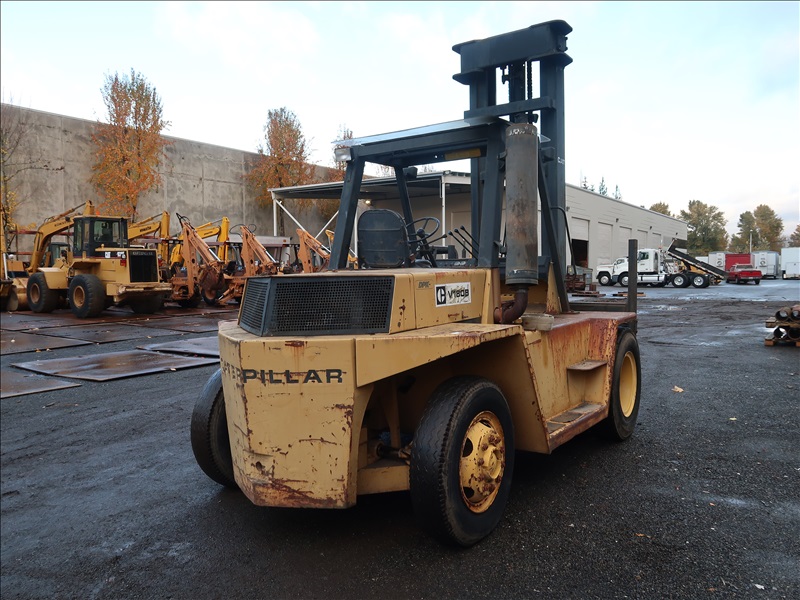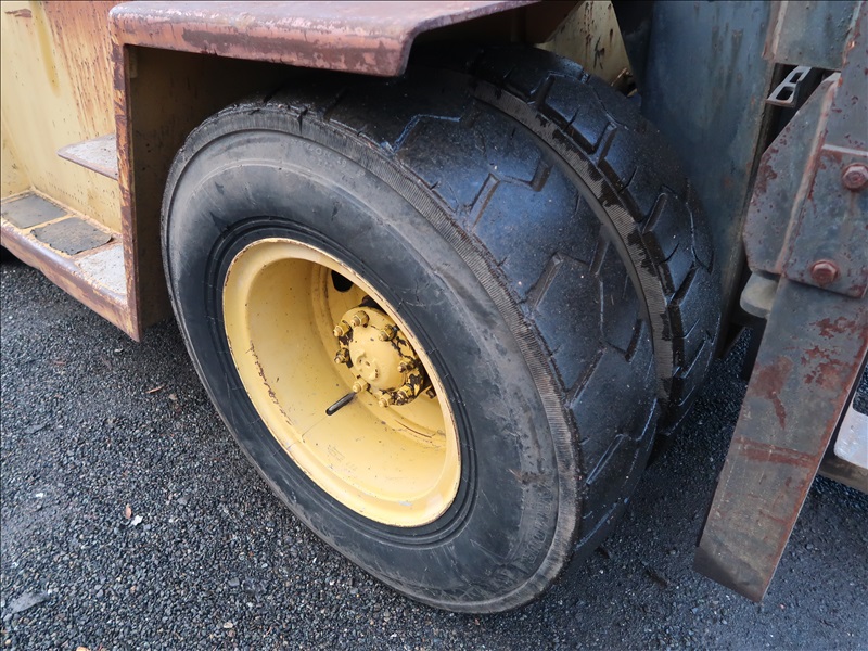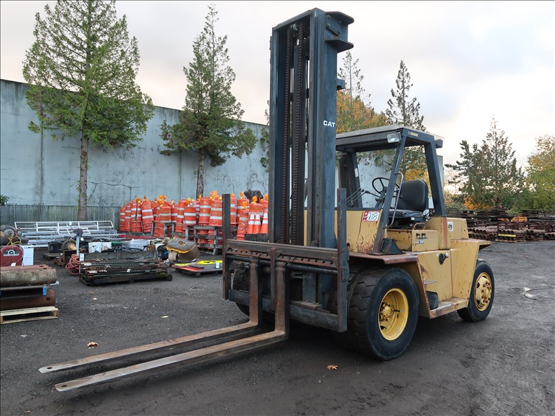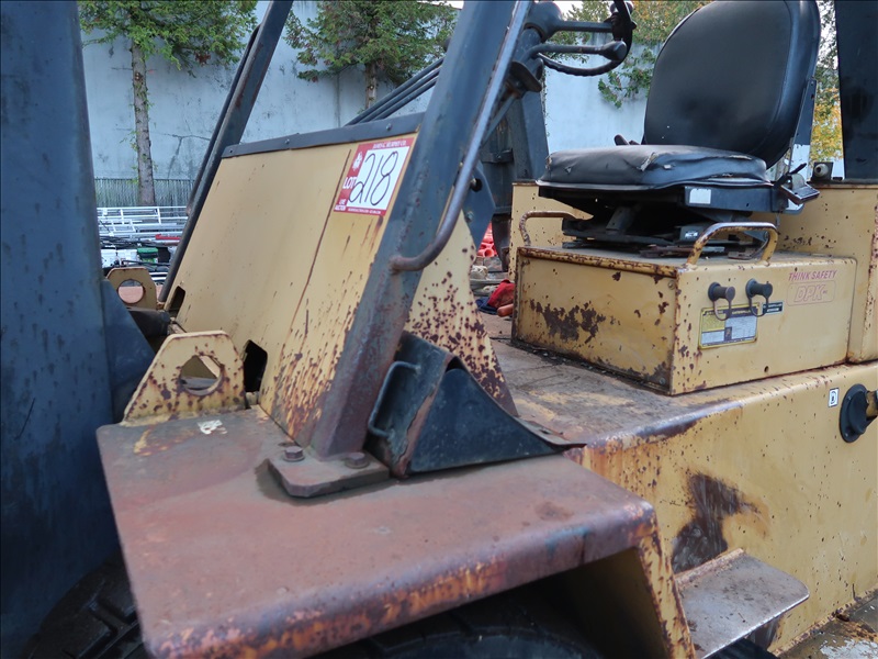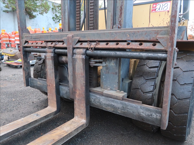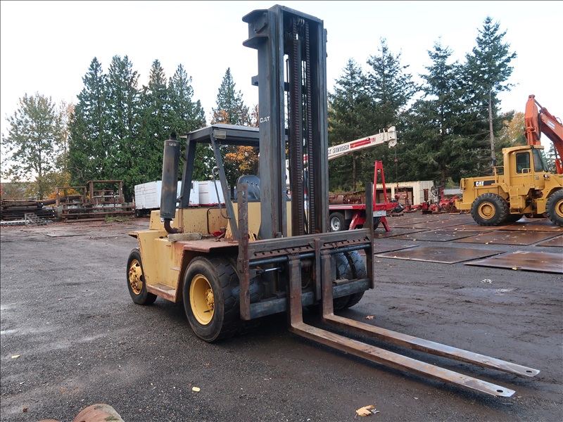DUAL PNEUMATIC 18,000 LB FORKLIFT, 3208 DIESEL, 218" 2-STAGE MAST, SIDESHIFT, HOUR METER READS: 9,582 (MUST STAY UNTIL 12 PM, WED, NOV. 14TH)
