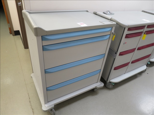 33" 4-DRAWER MEDICAL CRASH CART ON CASTERS W/1 LOCK & KEY (CRACKED TOP, BLUE)
