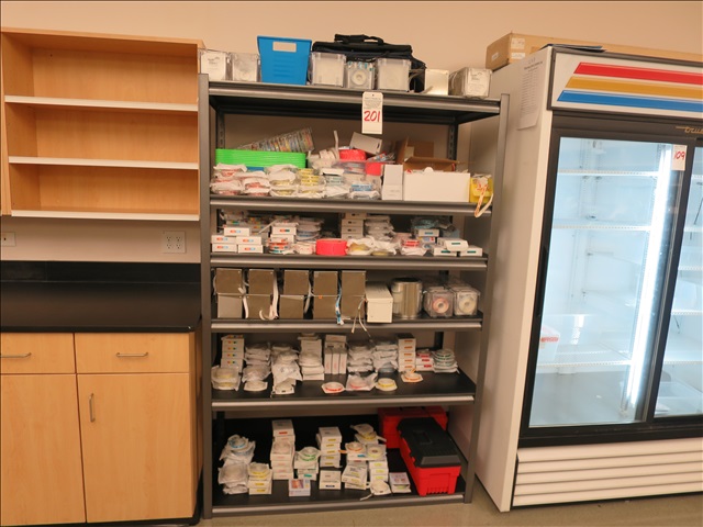 LOT, MISC WARNING STICKERS, STICKER DISPENSERS & 4' SHELVING UNIT(LAB 1)