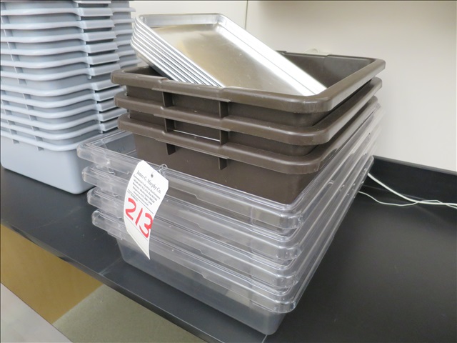 LOT, (7) MISC POLY TUBS & (7) ALUMINUM HALF TRAYS (LAB 5)