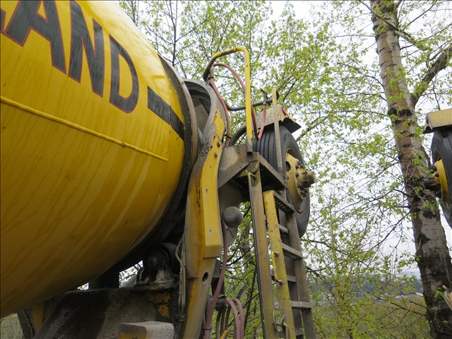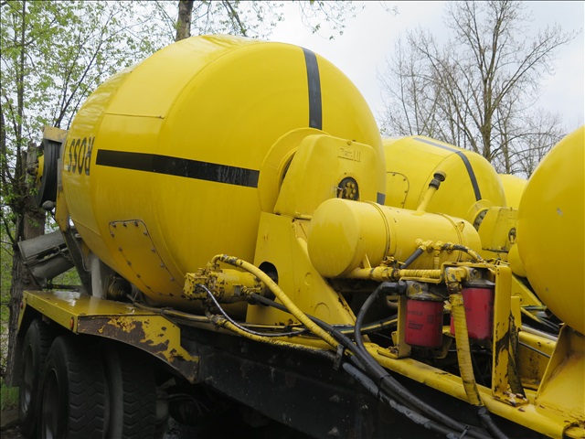 TRI AXLE, 9 CU YD MIXER TRUCK, 230 HP, 5+3, BEAM SUSPENSION, REX HYDRAULIC MIXER, S/A BOOSTER, WATER SYSTEM, ODOMETER READS: 516,086
