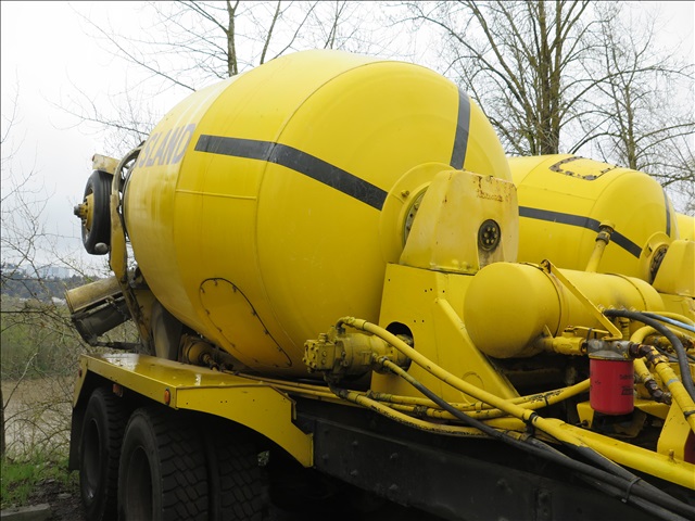 TRI AXLE, 9 CU YD MIXER TRUCK, 230 HP, 5+3, BEAM SUSPENSION, REX HYDRAULIC MIXER, S/A BOOSTER, WATER SYSTEM, ODOMETER READS: 553,143