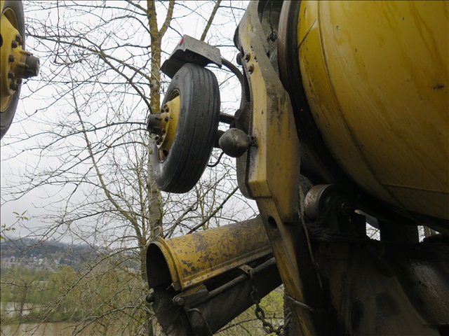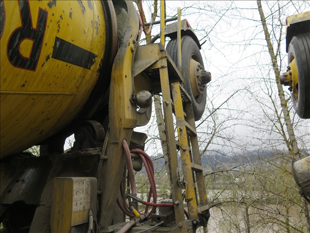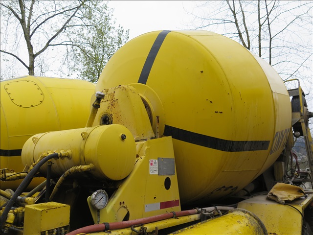 TRI AXLE, 9 CU YD MIXER TRUCK, 230 HP, 5+3, BEAM SUSPENSION, REX HYDRAULIC MIXER, S/A BOOSTER, WATER SYSTEM, ODOMETER READS: 557,544