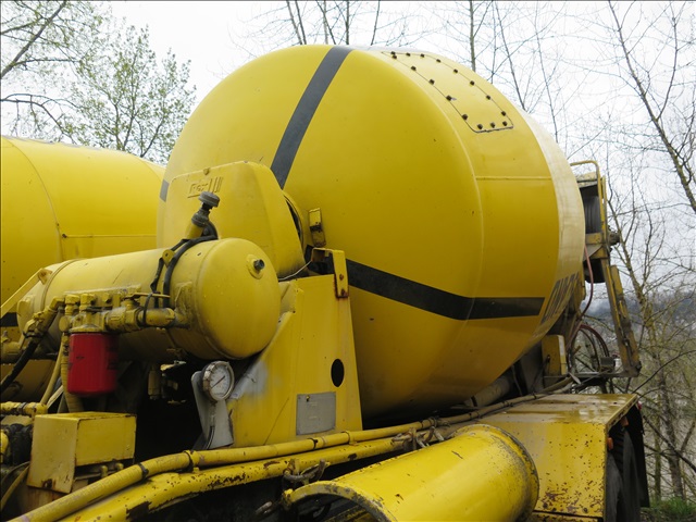 TRI AXLE, 9 CU YD MIXER TRUCK, 230 HP, 5+3, BEAM SUSPENSION, REX HYDRAULIC MIXER, S/A BOOSTER, WATER SYSTEM, ODOMETER READS: 598,701