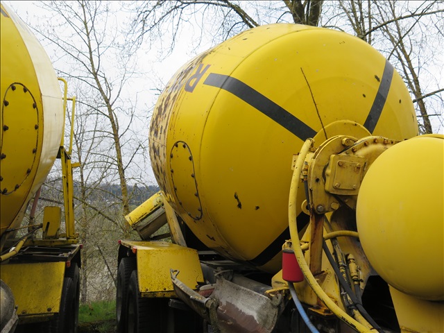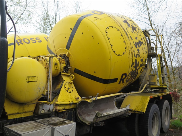 TRI AXLE, 9 CU YD MIXER TRUCK, 230 HP, 5+3, BEAM SUSPENSION, REX HYDRAULIC MIXER, S/A BOOSTER, WATER SYSTEM, ODOMETER READS: N/A