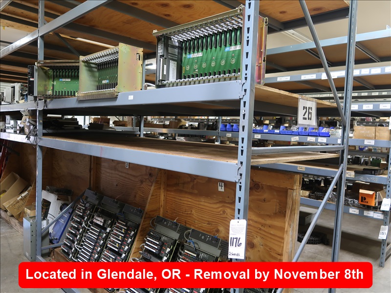 LOT, ASSORTED PLC RACKS ON THESE (2) SHELVES