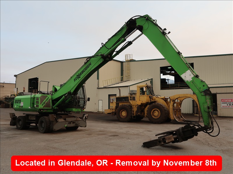 RUBBER TIRE MATERIAL HANDLER LOG LOADER W/DEUTZ BF6M1013 6-CYLINDER 150KW DIESEL ENGINE, MYRMO ROTARY LOG GRAPPLES, 45' BOOM MAX REACH, (8) SOLID 10.00-20 TIRES, OUTRIGGERS, HRS:16,719