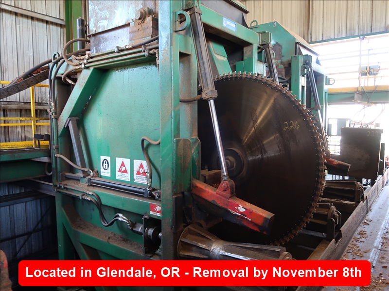 72" INSERT TOOTH TEMPOSONIC POSITIONED SAW MODULE W/TEMPOSONIC CYLINDER, BALDOR 60 HP/1,185 RPM MOTOR, (2) LOG CLAMPS, DIVERTER ARM & 34" HYDRAULIC DRIVEN HOURGLASS ROLLS, SAW HYDRAULICS MOUNTED ON POWER TRACK SYSTEM